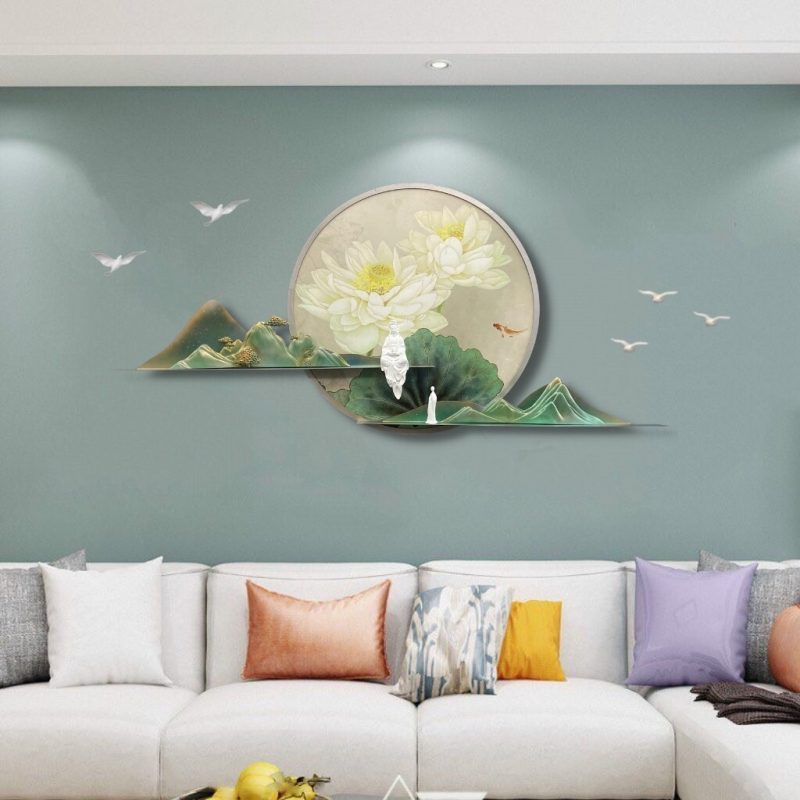 Tranh phù điêu Gốm kết hợp cùng sắt nghệ thuật, được thiết kế và lấy ý tưởng từ khung cảnh thiên nhiên đầy bình yên và lãng mạn. Với điểm nhấn vô cùng nổi bật và bắt mắt chính là hoa sen là quốc hoa của Việt Nam mang nhiều ý nghĩa phong thủy đem lại may mắn, tài lộc, thăng tiến, sức khỏe cho gia chủ.