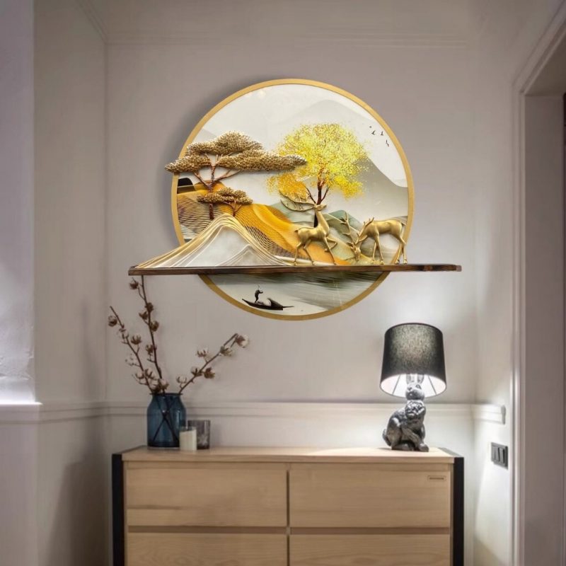 Tranh phù điêu Gốm kết hợp cùng sắt nghệ thuật, được thiết kế và lấy ý tưởng từ khung cảnh thiên nhiên đầy bình yên và lãng mạn. Với điểm nhấn vô cùng nổi bật và bắt mắt chính là đôi tuần lộc mang nhiều ý nghĩa phong thủy đem lại may mắn, tài lộc, thăng tiến, sức khỏe cho gia chủ.