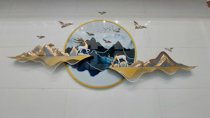 Tranh phù điêu Gốm kết hợp cùng sắt nghệ thuật, được thiết kế và lấy ý tưởng từ khung cảnh thiên nhiên đầy bình yên và lãng mạn. Với điểm nhấn vô cùng nổi bật và bắt mắt chính là đôi tuần lộc mang nhiều ý nghĩa phong thủy đem lại may mắn, tài lộc, thăng tiến, sức khỏe cho gia chủ.