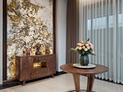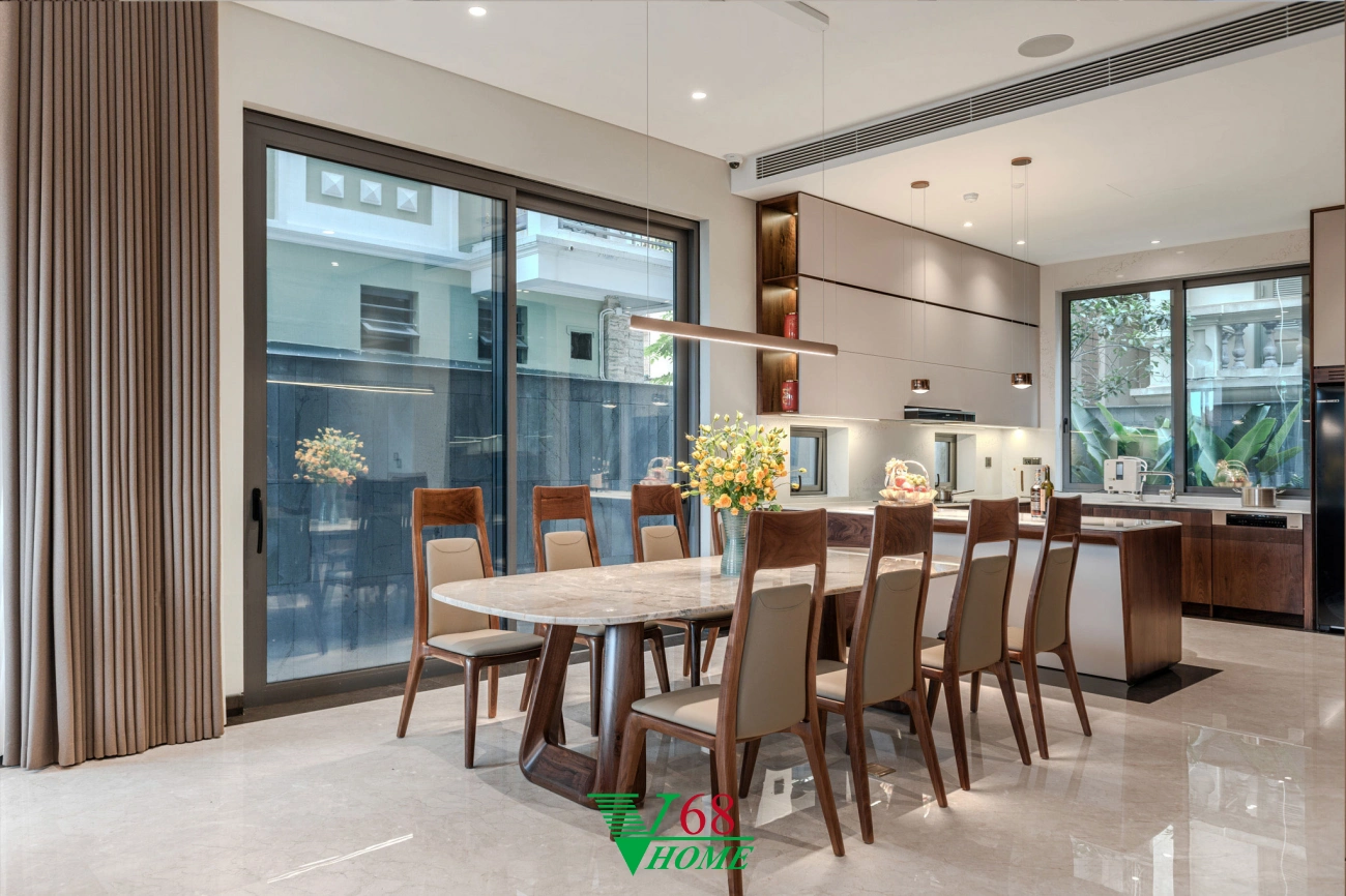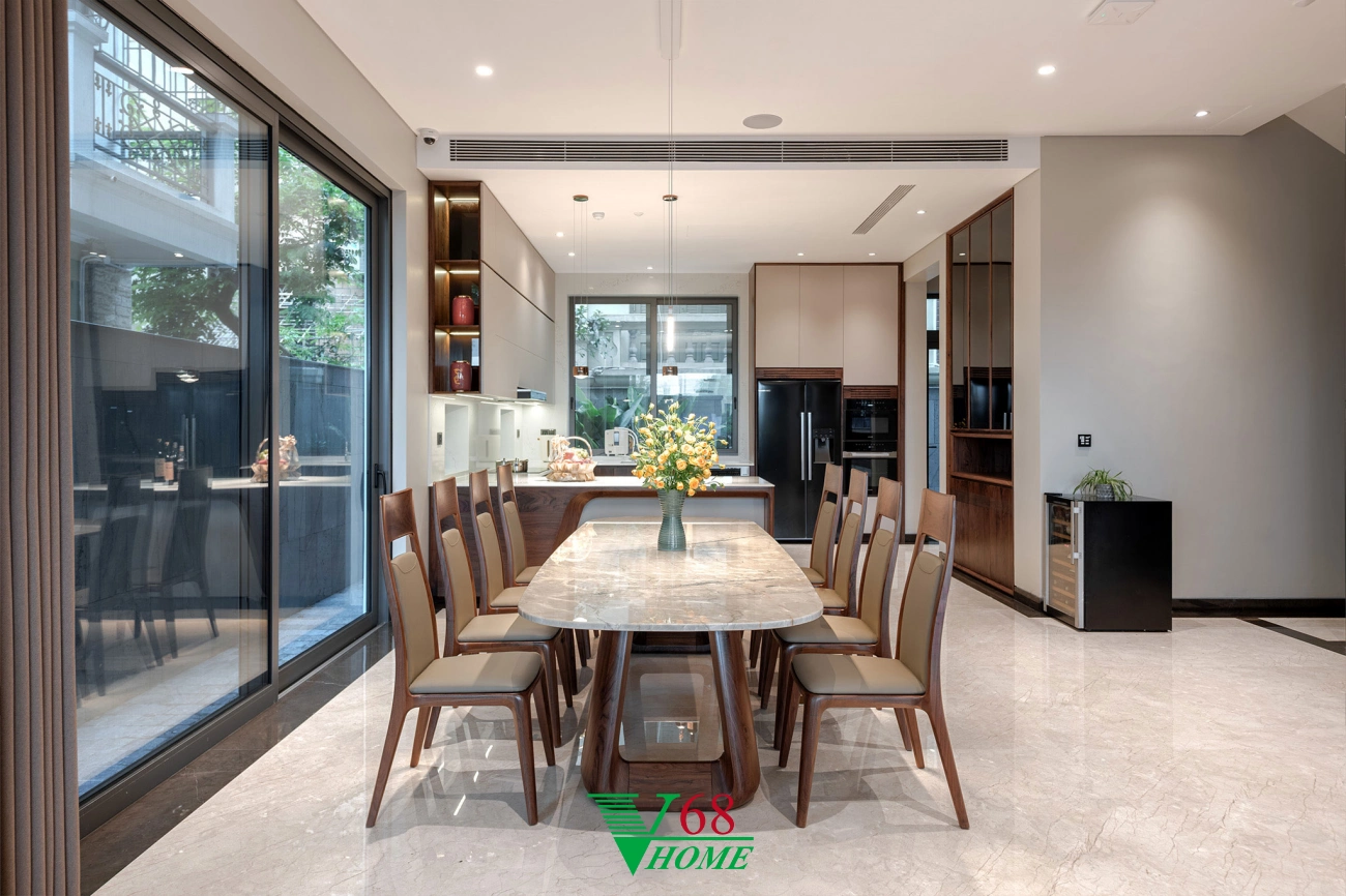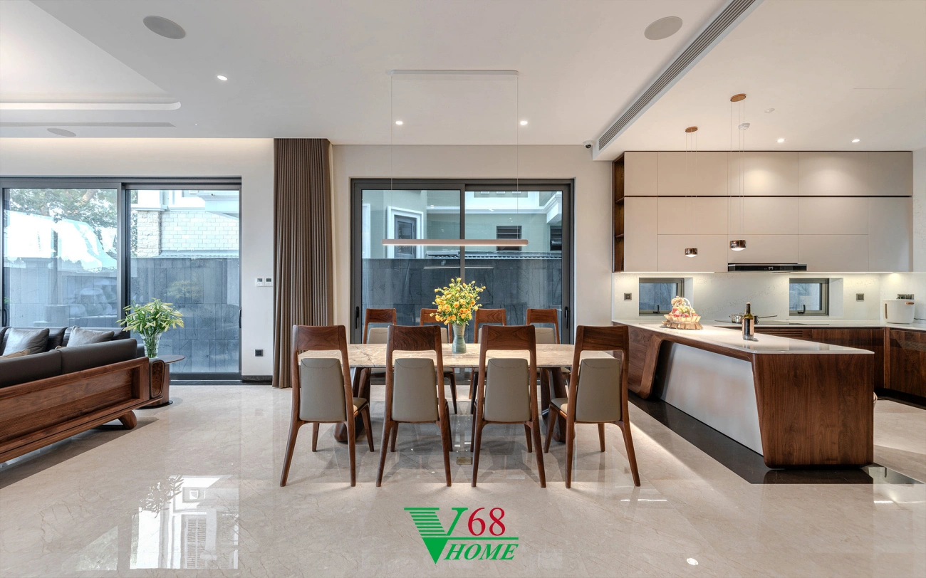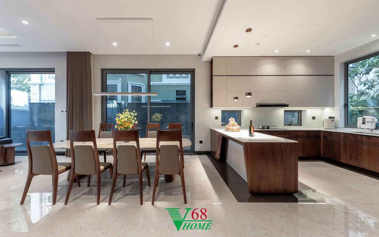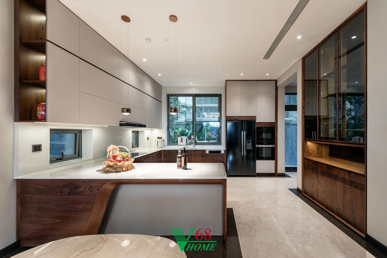 - Chất liệu gỗ óc chó cao cấp: Gỗ óc chó tự nhiên với vân gỗ đẹp mắt, độ bền cao, khả năng chống mối mọt tốt, mang đến sự sang trọng và đẳng cấp cho không gian bếp.