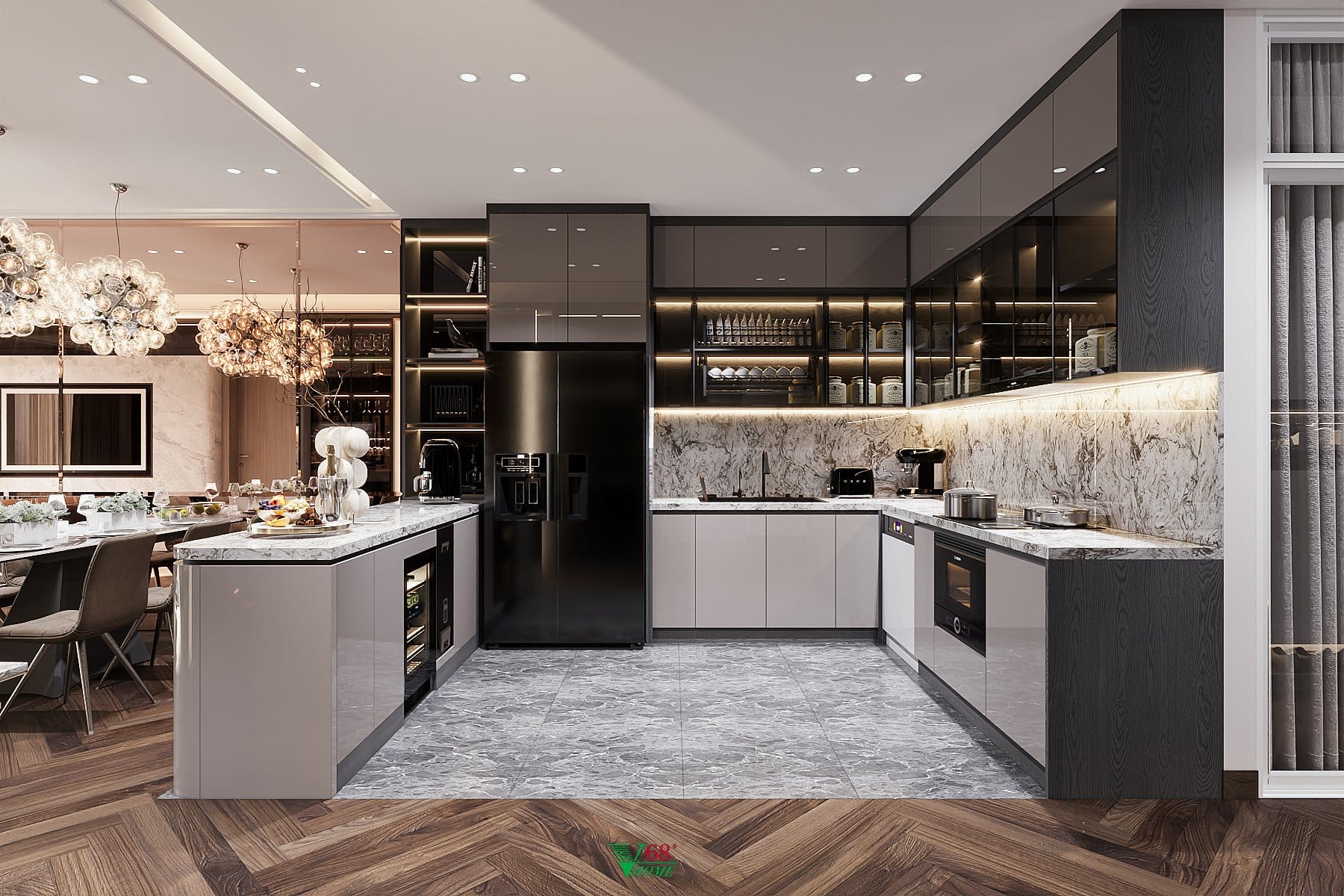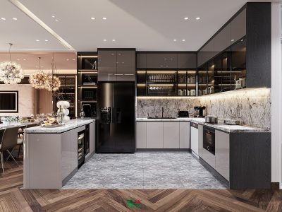 Tủ bếp hình chữ U là thiết kế rất phù hợp cho nhiều không gian nội thất chuyên nghiệp. Sử dụng loại tủ bếp này cho nhà ở tạo ra không gian nấu nướng sang trọng và tiện nghi như nhà hàng 5 sao. Dưới đây là mẫu thiết kế tủ bếp chữ U mã TB08 tại chung cư Park City, Hà Đông. Tủ bếp TB08 không chỉ là nơi để nấu nướng mà còn trở thành một không gian trang trí thể hiện đẳng cấp của chủ nhà.
