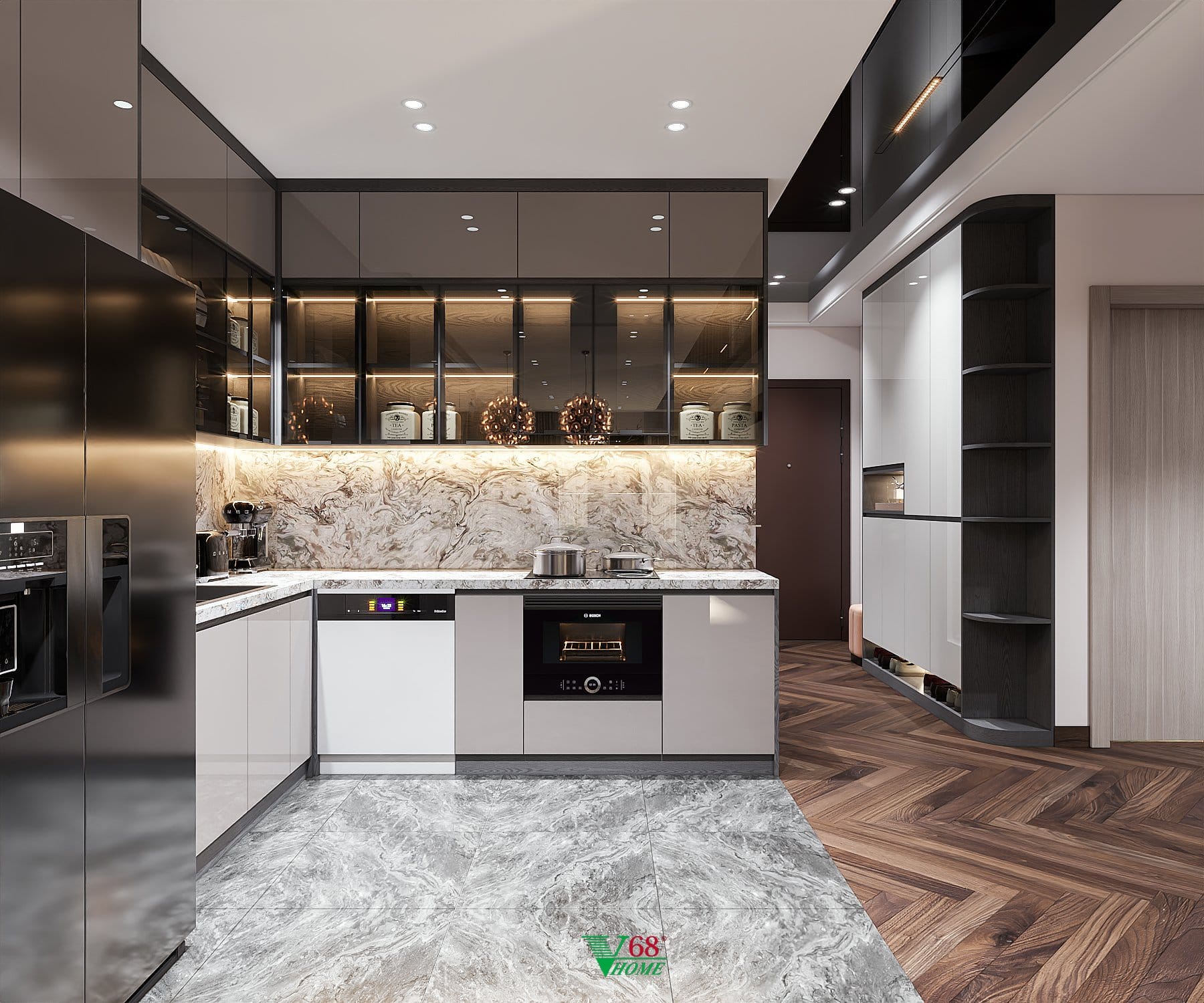 Do đó, để đáp ứng được nhu cầu của rất nhiều gia đình thì hiện nay trên thị trường có rất nhiều địa chỉ chuyên thiết kế và thi công kệ tủ bếp uy tín chất lượng được nhiều người đánh giá cao. Và một trong số đó phải kể đến là Nội thất V68. Đây là đơn vị có nhiều kinh nghiệm trong việc thiết kế và thi công kệ tr bếp với những ưu điểm nổi bật như sau: