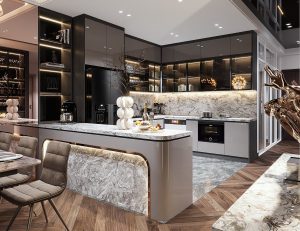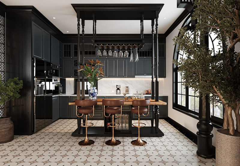 Tủ bếp tân cổ điển phong cách Châu âu là sự kết hợp độc đáo giữa thiết kế tủ bếp phong cách Châu âu cổ kính và không gian bếp hiện đại. Mẫu tủ bếp này rất thích hợp cho những biệt thự, chung cư cao cấp hoặc những ngôi nhà mà chủ nhân của nó rất thích phong cách hoài cổ.