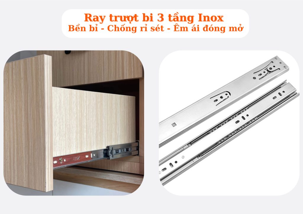 - Tiện nghi: Tủ bếp được trang bị nhiều ngăn tủ đa dạng, giúp bạn dễ dàng sắp xếp và lưu trữ đồ đạc.