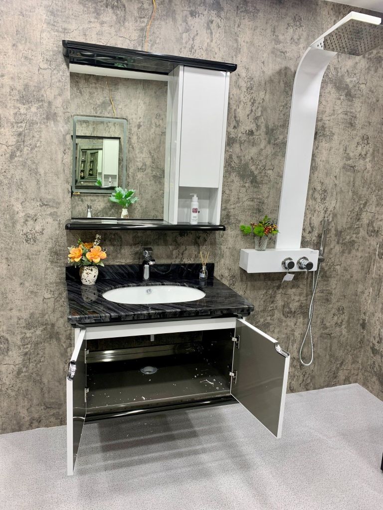 - Gương: chống mốc, khung inox chống rỉ.