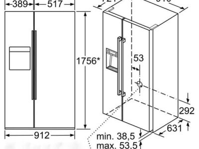 Kích thước tủ lạnh (CXRxS): 1756 mm x 912 mm x 721 mm
