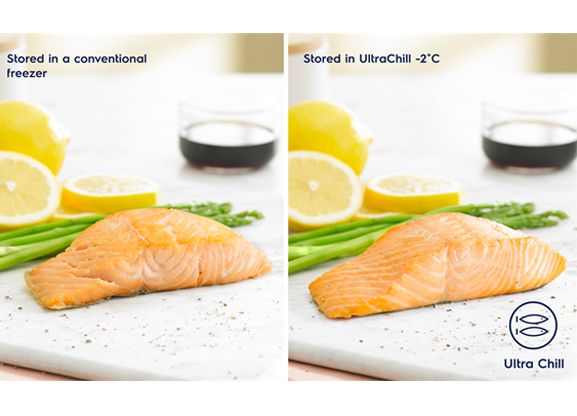 Với ngăn đông mềm UltraChill ở -2 độ C, thịt và hải sản tươi sống được giữ lạnh nhưng không bị đông đá, giúp thực phẩm tươi sống được bảo quản ở điều kiện tốt nhất và tươi ngon lâu hơn. Nhờ vậy, bạn luôn có thể thưởng thức các loại thực phẩm tươi ngon, trọn vẹn cả về màu sắc lẫn hương vị.