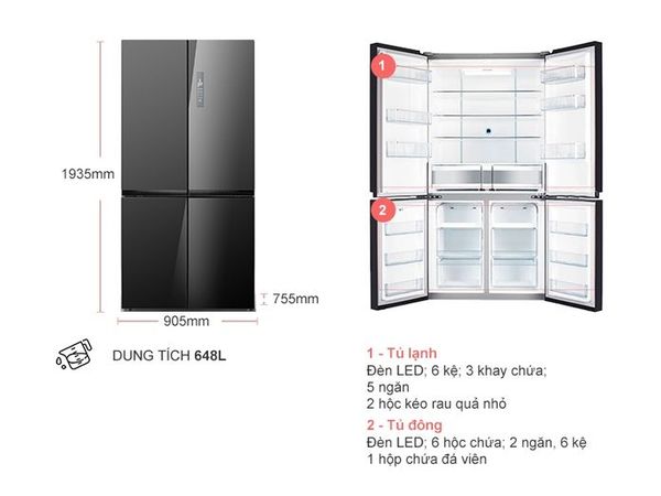 Dung tích lên đến 648 lít phù hợp cho gia đình trên 5 người