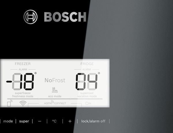 Tủ lạnh Bosch KGN56LB40O serie 6 được trang bị bảng điều khiển cảm ứng tùy chỉnh nhiệt độ với thiết kế tối giản. Điều này giúp người dùng dễ dàng sử dụng được những tiện ích của tủ lạnh đem lại. Đồng thời kiểm soát được mức nhiệt trong tủ lạnh một cách nhanh chóng tại tủ mát riêng và tủ đông riêng.