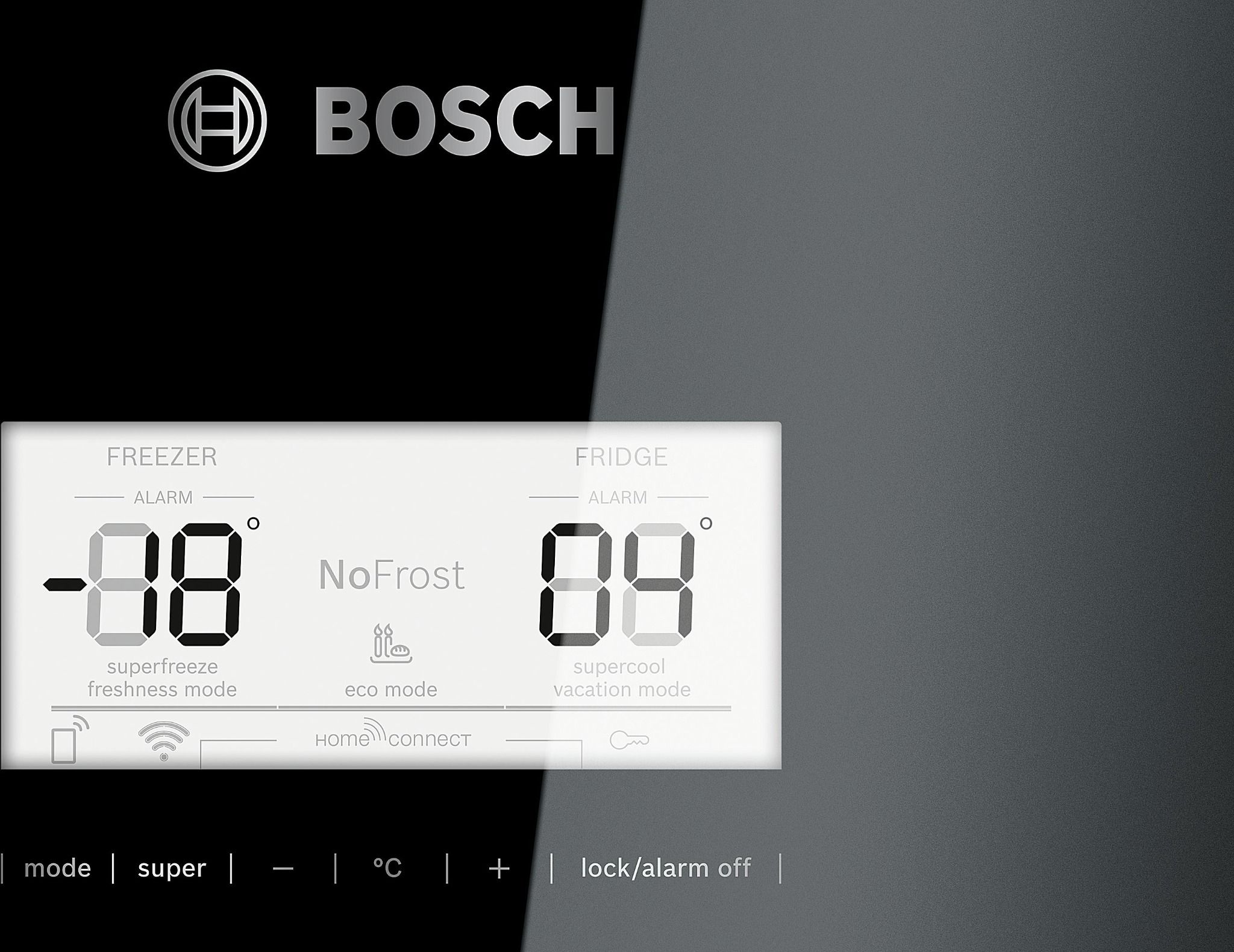 | Thiết lập điều khiển và báo hiệu | Super freeze freshness mode (Chế độ làm tươi siêu đông) Super cool vacation mode (Chế độ nghỉ mát) NoFrost (Không đóng tuyết) Eco mode (Chế độ tiết kiệm) Home Connect (Kết nối với điện thoại di động) |