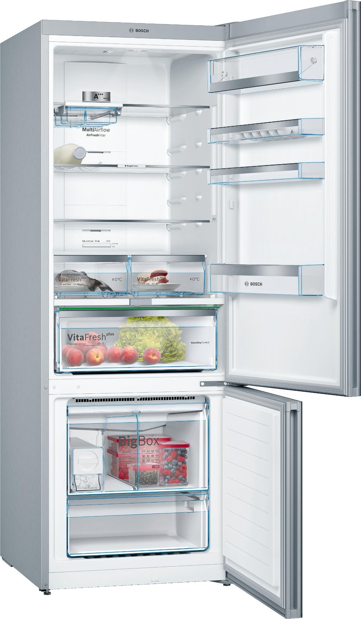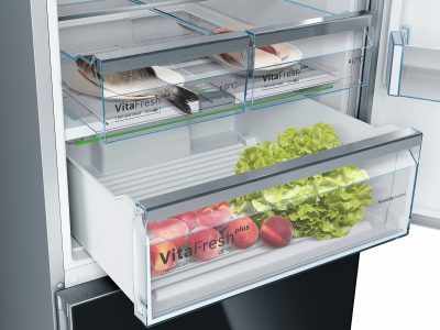 | Ngăn làm mát | 1 ngăn kéo VitaFresh Plus giữ thực phẩm tươi lâu gấp đôi 2 hộp VitaFresh để cá và thịt tươi lâu hơn 2 hệ thống ray mở rộng để dễ dàng kéo ra các ngăn ngăn kéo 4 kệ kính an toàn, trong đó, 3 kệ có thể điều chỉnh độ cao 2 Khay cửa lớn (Lớn) 2 Khay cửa nhỏ (Nhỏ) 1 ngăn đựng sữa |