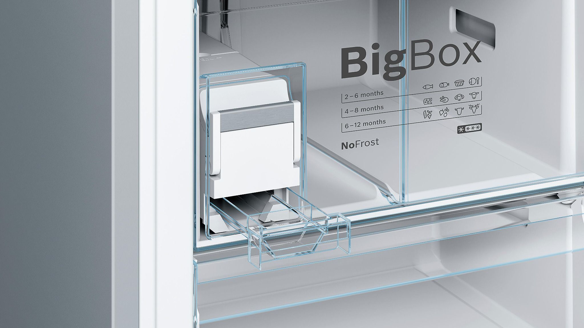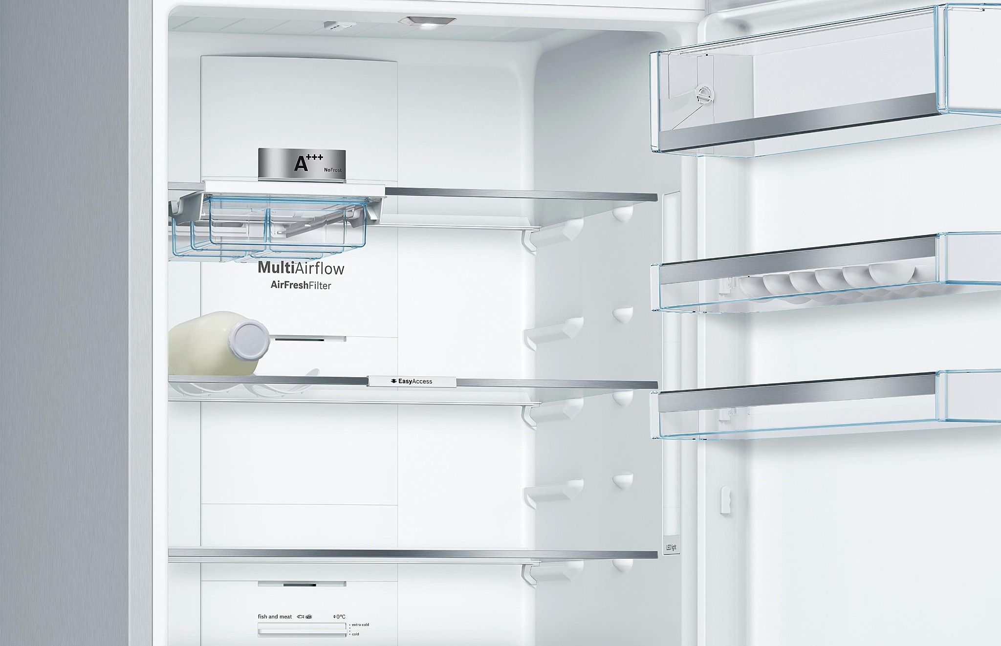 - 3 ngăn chứa thực phẩm được kéo ra hoàn toàn nhờ hệ thống ray trượt mở toàn phần