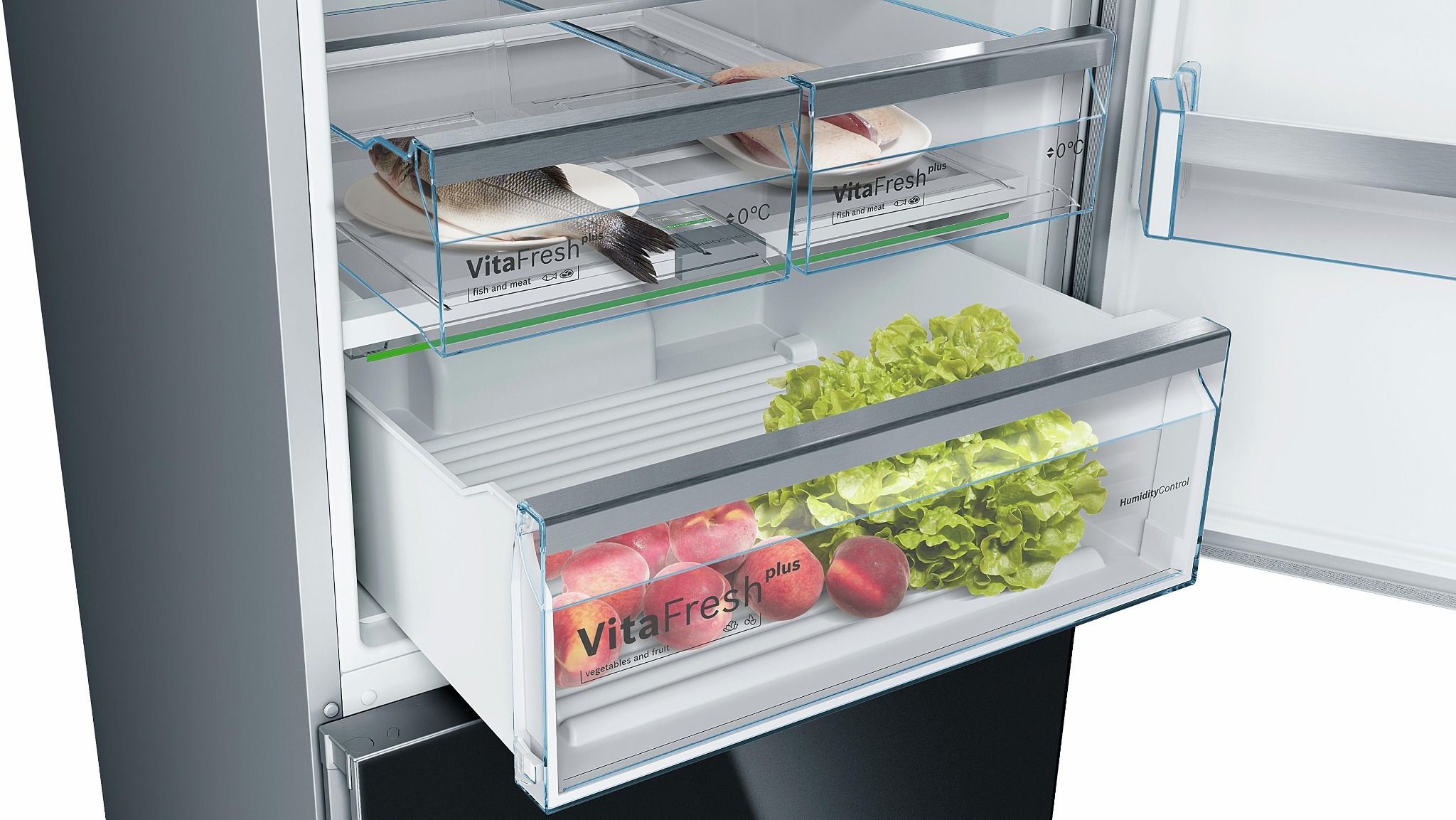 - 2 ngăn chứa VitaFresh giữ cho độ tươi của cá và thịt lâu hơn