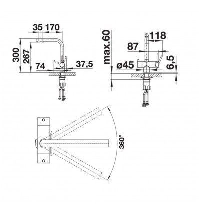 Kích thước của vòi rửa bát Blanco Fontas II 523137